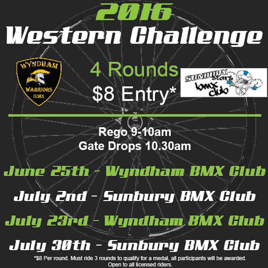 The club and its members would like to thank the Wyndham BMX Club’s Committee, Wyndham City Council, Campbell Atkins, Cameron Anderson, Marie Brittan, Peter Maynard, Graham King, Joanne Ryan MP, Tim Pallas MP, and also the Wyndham Park Primary School for there ongoing support.
