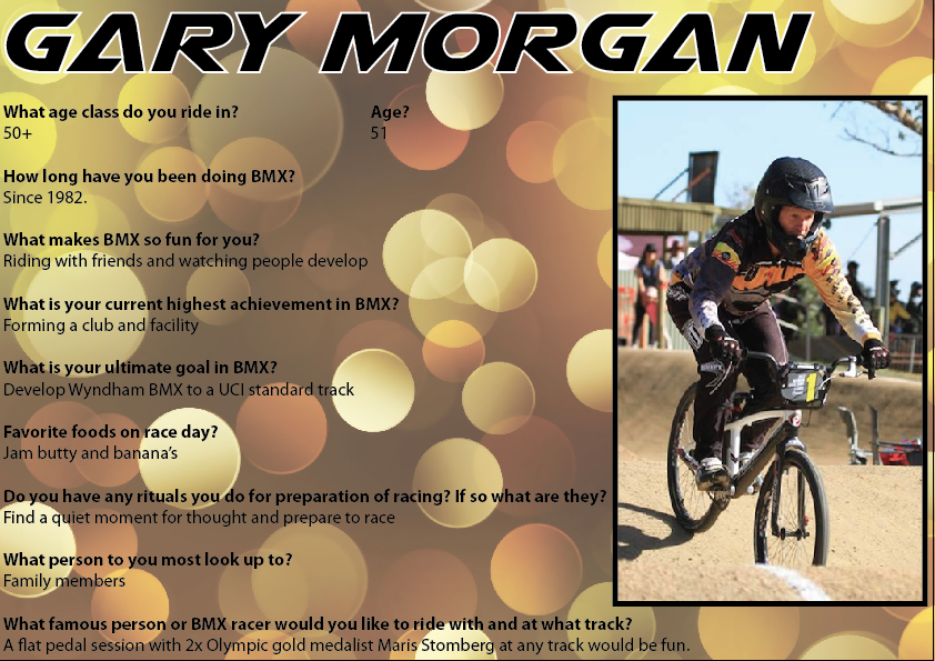 The Wyndham Warriors BMX Club would like to congratulate Gary on a tremendous career,we congratulate and thank him for building such a great club. We wish Gary all the best in his future endeavours.