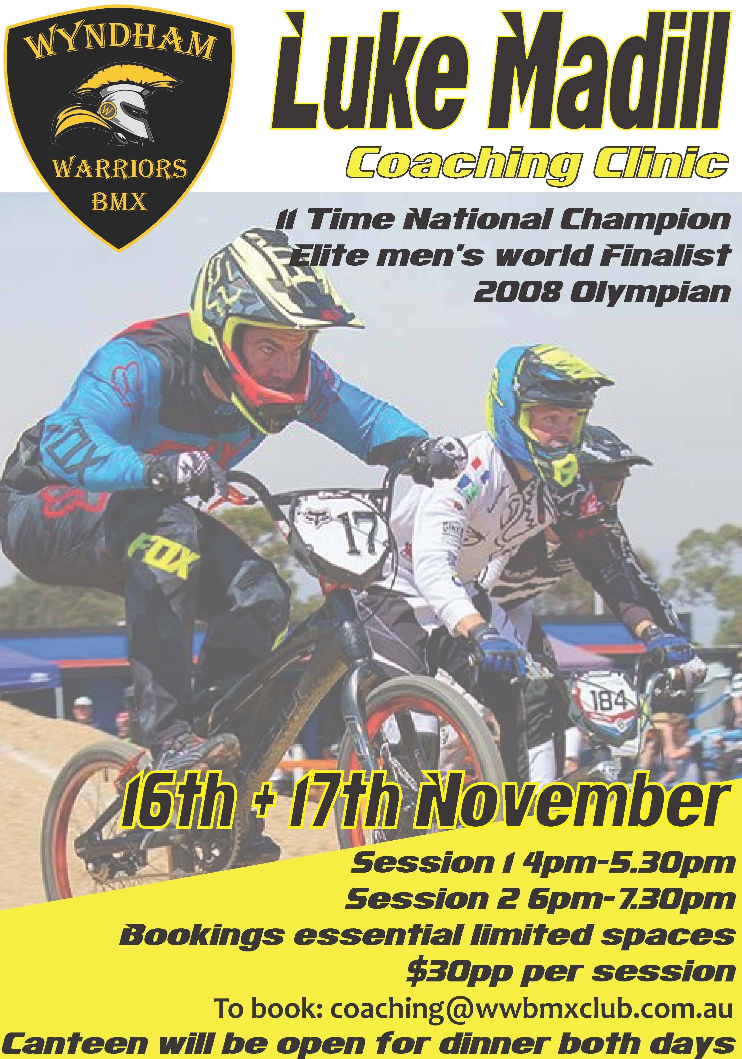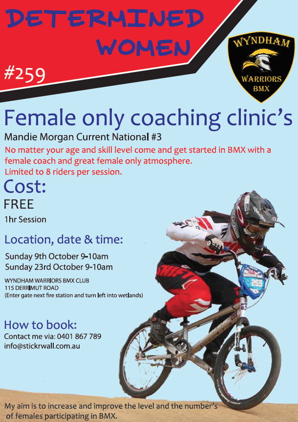 Coaching: 8-9am to book email coaching@wwbmxclub.com.au