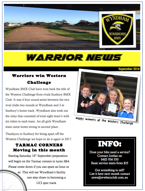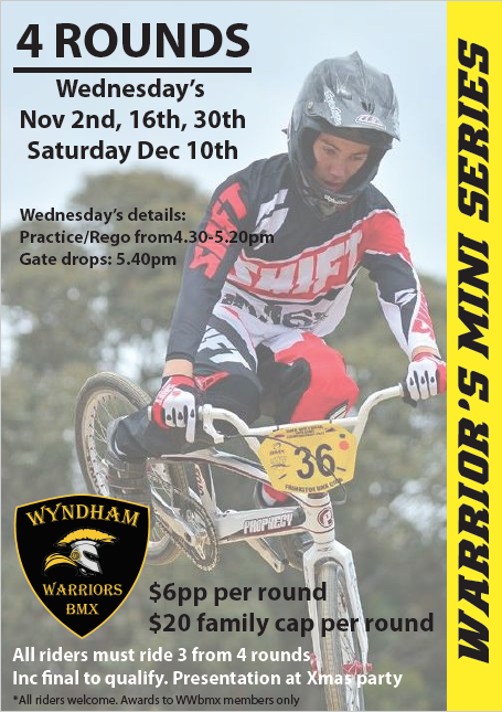 2015 marks 10 years of the Wyndham Warriors BMX Club as it known today. Stay tuned for details of our 10th year celebrations.